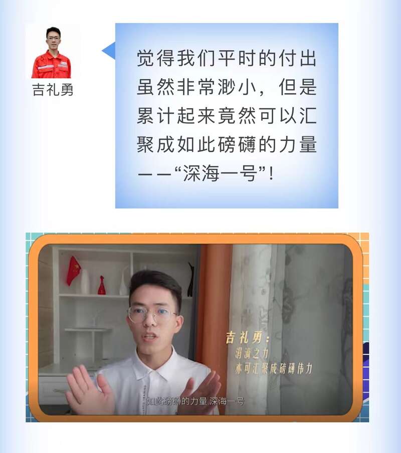 “視頻反復(fù)看了好幾遍,在看到曾經(jīng)的師傅雷亞飛同志向總書記匯報工作的時候,內(nèi)心真的特別特別激動。”作為中國海油的工藝主操,吉禮勇雖然平時不在“深海一號”工作,但他的自豪與驕傲之情溢于言表,“在其他海上作業(yè)平臺為中國海油今后的發(fā)展貢獻(xiàn)自己的綿薄之力?!?