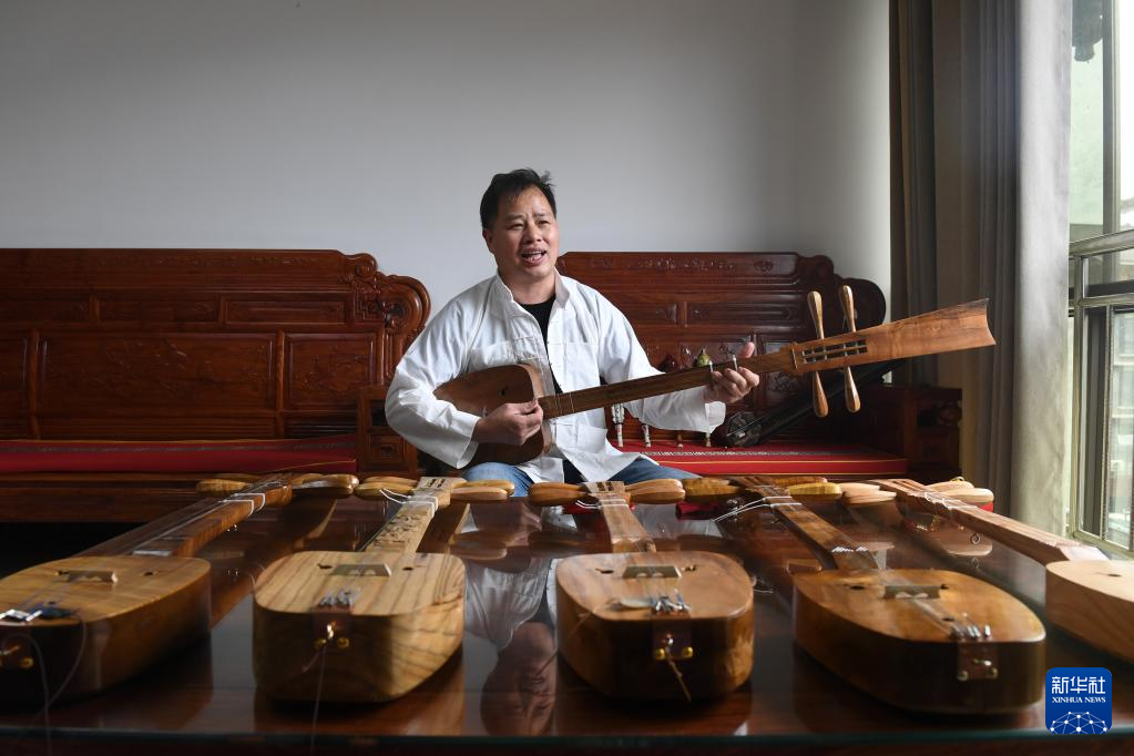 侗族琵琶歌是我國(guó)國(guó)家級(jí)非物質(zhì)文化遺產(chǎn)。今年49歲的楊龔家住廣西三江侗族自治縣林溪鎮(zhèn)冠洞村,是當(dāng)?shù)囟弊迮酶鑲鞒腥?,他不僅會(huì)編會(huì)唱侗族琵琶歌,還會(huì)制作侗族琵琶,平時(shí)一有時(shí)間就到附近村寨和學(xué)校教授侗族琵琶歌,讓侗族琵琶歌在三江侗族山鄉(xiāng)薪火相傳。