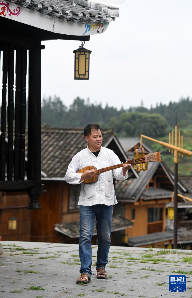 6月15日,在廣西三江侗族自治縣林溪鎮(zhèn)冠洞村,楊龔在彈唱侗族琵琶歌。