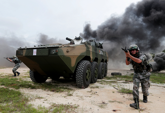 駐香港部隊(duì)某旅裝步一連官兵開(kāi)展步戰(zhàn)協(xié)同訓(xùn)練。易定/攝