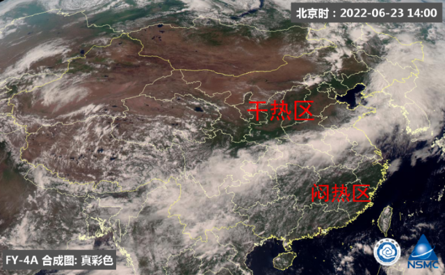 昨天14時(shí),雨帶南北兩側(cè)火熱十足,中間清涼。