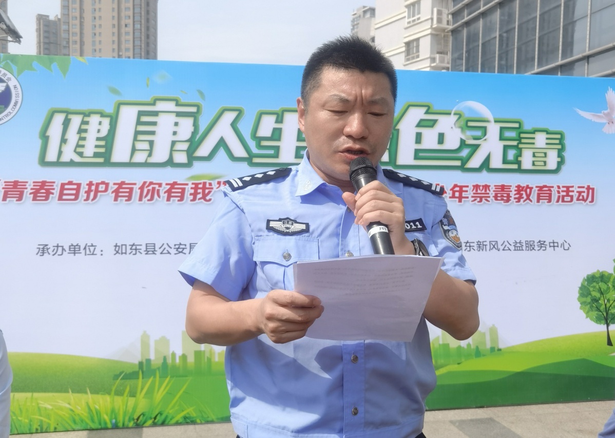 “對(duì)于即將步入社會(huì)的青少年而言,應(yīng)當(dāng)深知毒品危害,深明禁毒意義,深感自護(hù)必要。故此,我倡議:在今后的學(xué)習(xí)成長(zhǎng)中,我們將努力掌握毒品安全知識(shí),深入了解相關(guān)法律政策;我們將樹立堅(jiān)定防毒禁毒意識(shí),自覺遠(yuǎn)離毒品誘惑;我們將主動(dòng)參與禁毒活動(dòng),勇于抵制非法行為,不讓毒品危害青少年的健康成長(zhǎng),讓我們的青春不‘毒’行,一起向未來!”6月26日上午,在江蘇省如東縣禁毒辦、如東縣公安局、共青團(tuán)如東縣委、如東縣教育體育局、如東新風(fēng)公益服務(wù)中心聯(lián)合舉辦的“青春自護(hù) 有你有我” 2022年如東縣青少年禁毒宣傳教育活動(dòng)中,學(xué)生代表張蔣逸發(fā)出響亮倡議。