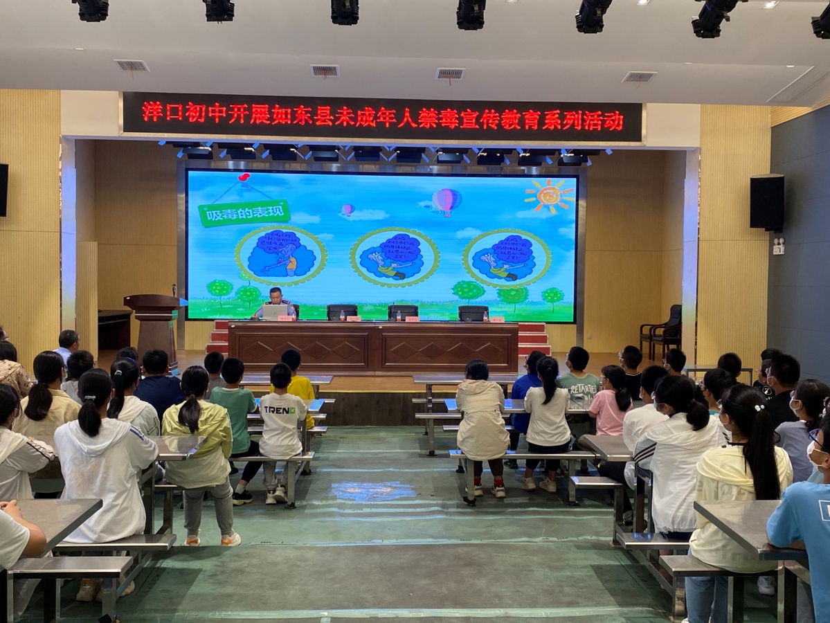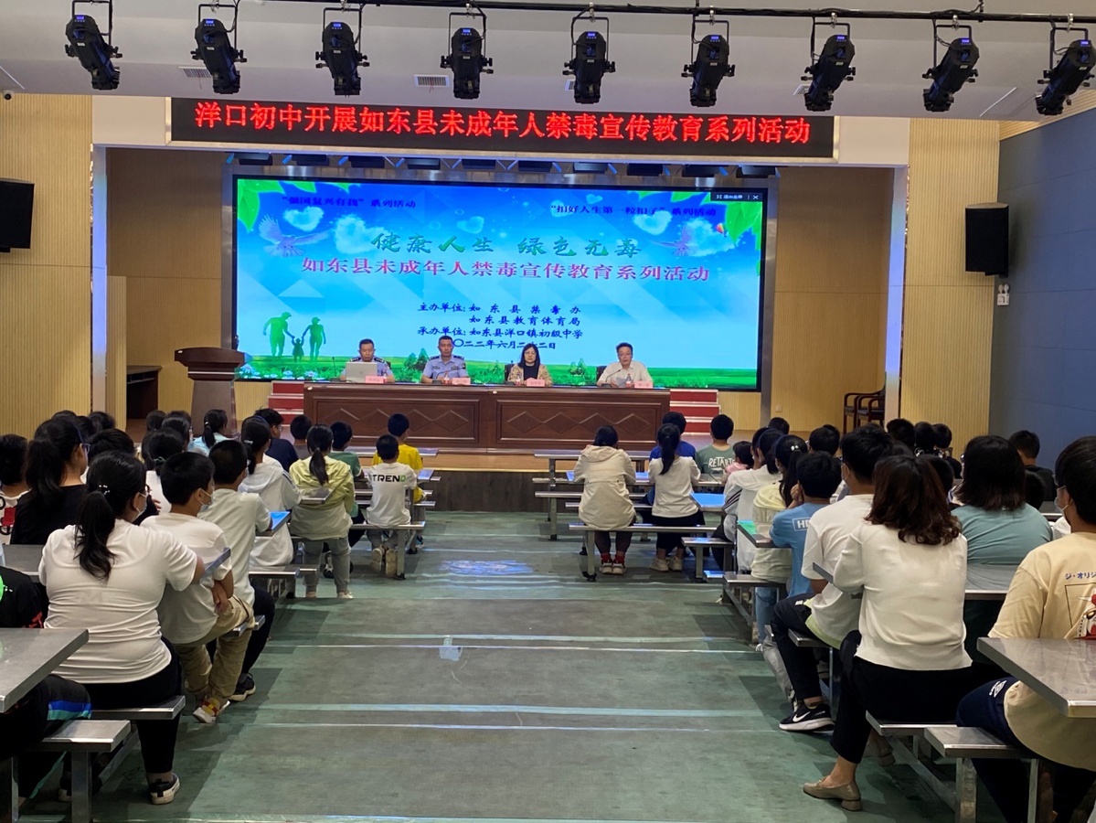 為減少毒品對(duì)校園的危害,6月22日下午,如東縣禁毒辦聯(lián)合如東縣教育體育局、洋口鎮(zhèn)派出所在洋口鎮(zhèn)洋口初中開展了“健康人生 綠色無毒”禁毒宣傳教育活動(dòng)??h禁毒大隊(duì)隊(duì)長(zhǎng)徐元國、縣禁毒辦臨時(shí)黨支部副書記姜引引,洋口派出所所長(zhǎng)、法治副校長(zhǎng)林冬云及洋口初中全體師生參加了此次活動(dòng)。