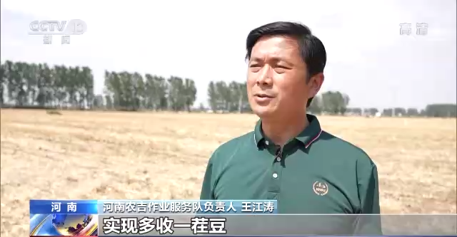 河南農(nóng)吉作業(yè)服務隊負責人 王江濤:在保證咱們玉米不減產(chǎn)的情況下,實現(xiàn)多收一茬豆,大約200斤每畝,為咱們農(nóng)戶實現(xiàn)了一季雙收,達到了增產(chǎn)增效的目的。