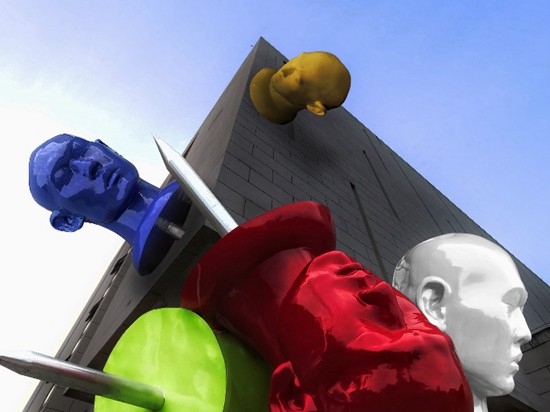 作品以“大頭釘”為原型,將釘帽轉(zhuǎn)換為頭像,表現(xiàn)我們因焦慮不安產(chǎn)生的“頭大”情緒;鋼釘則代表年輕人尖銳、堅韌的特質(zhì),是理想中“自我”的模樣,也是向著理想的自己不斷突破的精神象征。