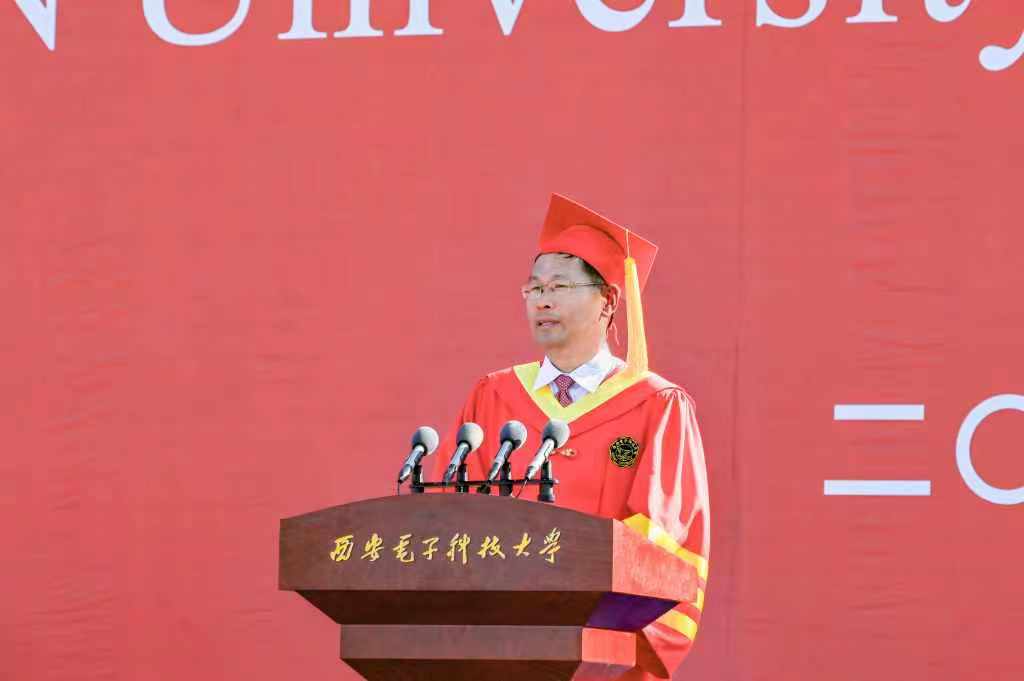 起航西電,筑夢遠方;云程發(fā)軔,未來可期。6月25日,西安電子科技大學2022屆學生畢業(yè)典禮隆重舉行。黨委書記查顯友,黨委副書記楊銀堂,副校長蔣舜浩,黨委副書記、紀委書記任應坤,副校長王泉、石峰、林松濤,學校學位評定委員會委員,相關職能部門和各學院負責同志,教師代表,畢業(yè)生家長代表參加典禮。典禮由黨委副書記、副校長任小龍主持。