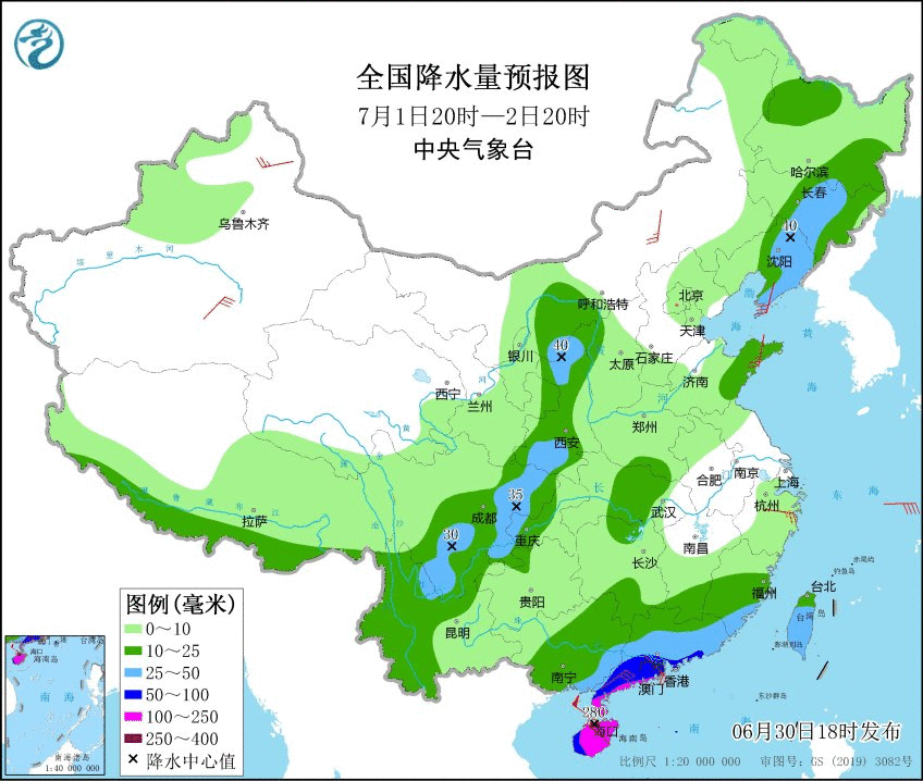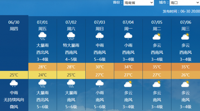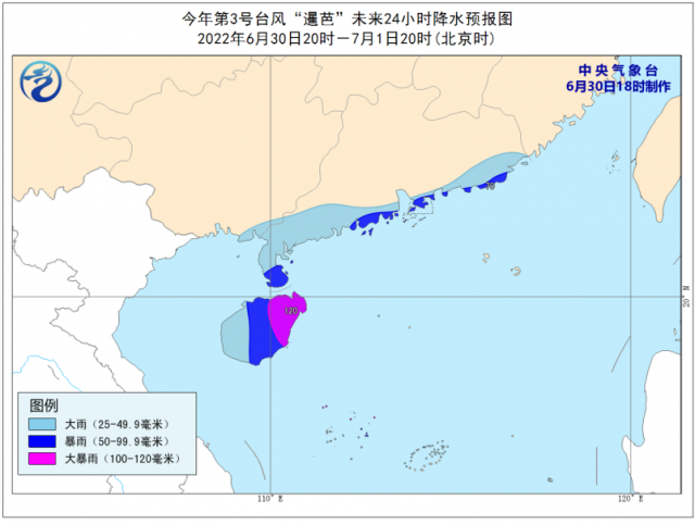 降水預(yù)報(bào):30日20時(shí)至7月1日20時(shí),廣東中南部、廣西東南部、海南島等地部分地區(qū)有中到大雨,其中,廣東南部沿海、海南島中東部的部分地區(qū)有暴雨或大暴雨(100-120毫米)。