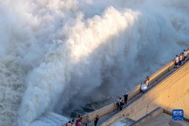 7月4日,游客在三門峽水利樞紐觀看調(diào)水調(diào)沙場(chǎng)景。 三門峽水利樞紐自7月4日13時(shí)起進(jìn)行汛前調(diào)水調(diào)沙,按2000立方米每秒泄流。 新華社發(fā)(杜杰 攝)