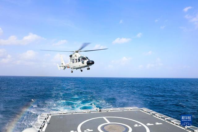中國海軍第40批護航編隊呼和浩特艦組織艦載直升機起降訓練(2月9日攝)。