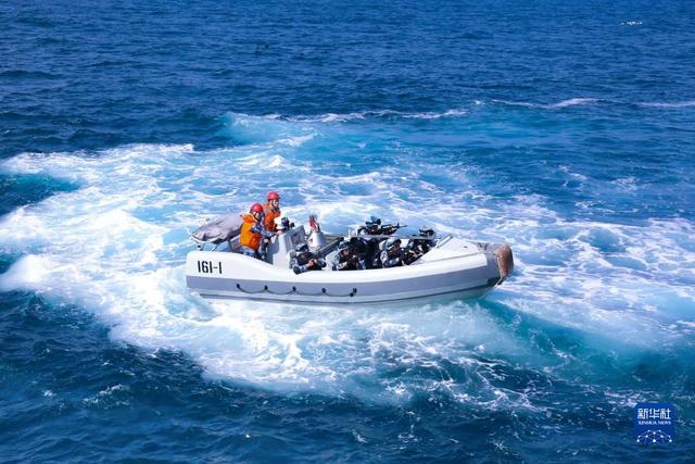 中國海軍第40批護航編隊在航渡期間組織開展武力營救訓練,特戰(zhàn)隊員模擬搭乘小艇前出(3月22日攝)。