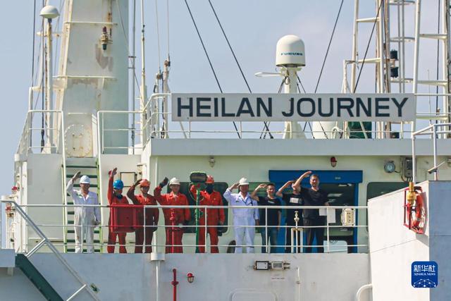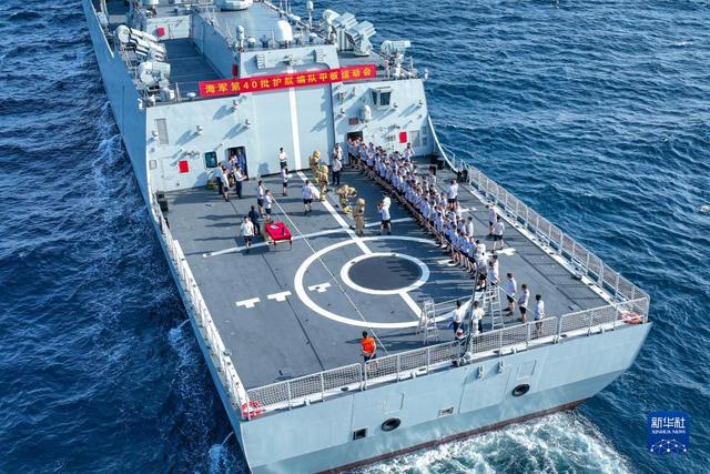 中國海軍第40批護航編隊岳陽艦為“海瀾之旅”號提供醫(yī)療救助,船員向我方揮手致意(5月11日攝)。