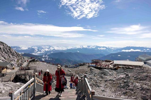 7月5日,游客在云南麗江玉龍雪山景區(qū)游覽。近日,云南省麗江市玉龍雪山景區(qū)旅游持續(xù)回暖,秀麗壯美的風(fēng)光吸引八方游客前來觀奇攬勝。圖為7月5日,游客在玉龍雪山景區(qū)乘坐索道纜車游覽。(工人日?qǐng)?bào)-中工網(wǎng)通訊員 湯德宏)