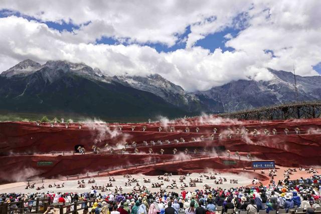 7月5日,游客在云南麗江玉龍雪山景區(qū)游覽。近日,云南省麗江市玉龍雪山景區(qū)旅游持續(xù)回暖,秀麗壯美的風(fēng)光吸引八方游客前來觀奇攬勝。圖為7月5日,游客在玉龍雪山景區(qū)觀看原生態(tài)大型實(shí)景演出《印象·麗江》。(工人日?qǐng)?bào)-中工網(wǎng)通訊員 湯德宏)