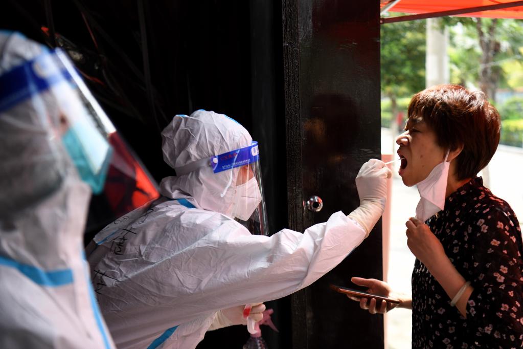 7月3日,在安徽省宿州市泗縣虹城街道東關(guān)社區(qū),醫(yī)務(wù)人員為居民進行核酸采樣。新華社記者 黃博涵 攝