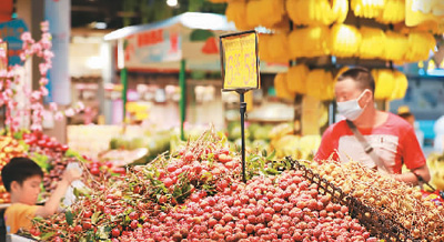 消費(fèi)者在貴州省黔東南苗族侗族自治州從江縣一家超市選購(gòu)水果。 |