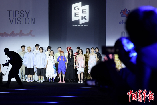 7月27日,海南??冢诙弥袊?guó)國(guó)際消費(fèi)品博覽會(huì)時(shí)裝周上,4個(gè)年輕品牌的設(shè)計(jì)師與模特在走秀結(jié)束后合影,他們中不乏00后。