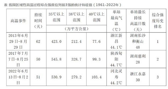 二、區(qū)域性高溫過程綜合強度已居歷史第三強