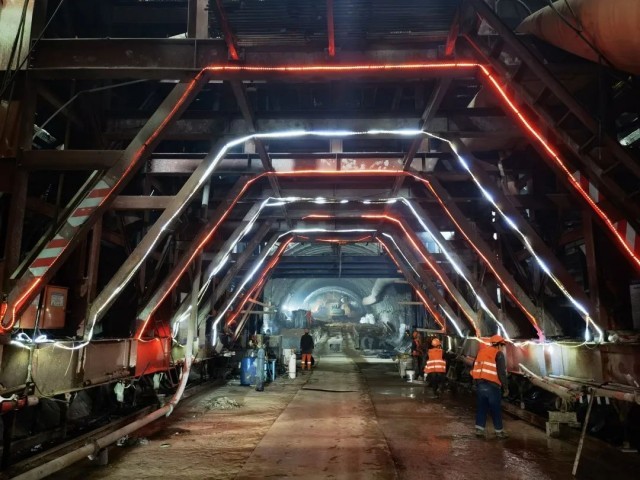 隧道于2018年10月19日開工,采用長隧短打的方法,開設(shè)5道斜井、10個掌子面,24小時同步循環(huán)作業(yè)。面對復(fù)雜地質(zhì)條件,施工單位采用“帷幕注漿加固+地表降水”技術(shù)方案,極大地降低了安全風(fēng)險,破解了流砂段的施工難題。