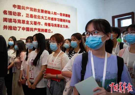 2021年7月7日,北大紅樓,北京聯(lián)合大學的學生們參加北京紅色教育資源融入思政課實踐教學的第三場示范教學課。中青報·中青網(wǎng)記者 李崢苨/攝