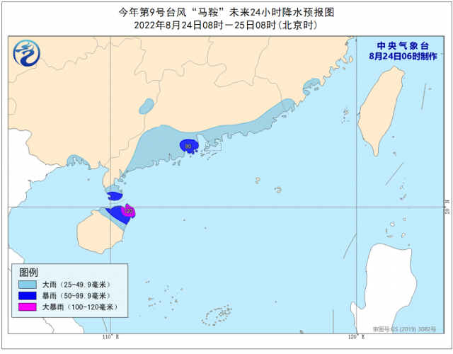 降水預(yù)報(bào):24日08時(shí)到25日08時(shí),廣東南部、海南島東北部、廣西南部沿海有大雨或暴雨,局地有大暴雨(100-120毫米)。