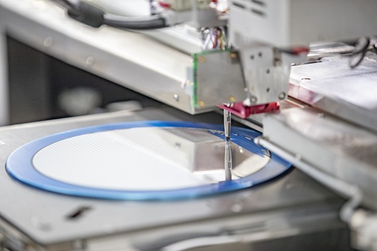 在重慶平創(chuàng)半導(dǎo)體研究院有限責(zé)任公司,工作人員利用設(shè)備對芯片進行貼片作業(yè)(2022年4月15日攝)。新華社記者 黃偉/攝