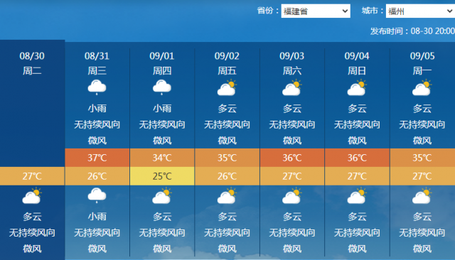 福州8月30日往后7天里5天報(bào)了35℃以上高溫