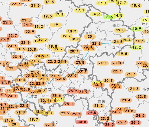 重慶大部氣溫都在20℃出頭
