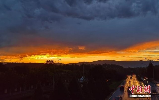 8月30日,北京雨后現(xiàn)絢麗晚霞。 中新社記者 盛佳鵬 攝