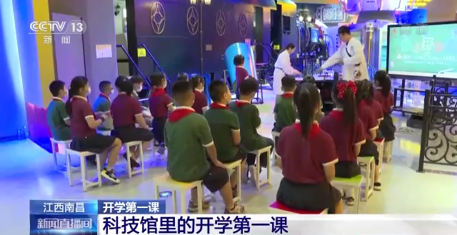 在江西南昌的南京路小學,“開學第一課”的課堂被搬進了科技館,為學生們送上輕松有趣的開學“大餐”。孩子通過現(xiàn)場觀摩“液氮”實驗,一口氣吹塑料袋、參與“書本”拔河比賽等活動,在沉浸式、體驗式、互動式的科技實踐中學習科技知識,近距離感受科技魅力。