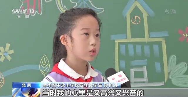 清華附中永豐學校四年級學生 孫和淇:我能代表全班同學去采訪翟叔叔,當時我的心里是又高興又興奮的。翟叔叔給我們講了他很多的考試經(jīng)歷,從今天開始,我要好好學習天天向上,爭取做一個跟翟叔叔一樣,對自己有擔當、對國家有貢獻的人。