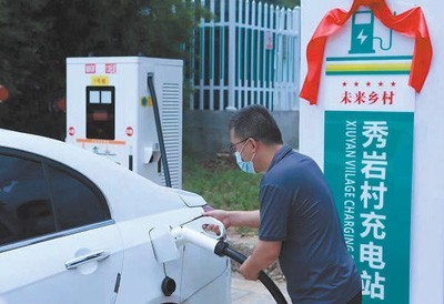 浙江永康市農(nóng)業(yè)農(nóng)村局和國網(wǎng)永康市供電公司密切合作,共同打造“未來鄉(xiāng)村”充電站,將綠色消費(fèi)網(wǎng)絡(luò)向鄉(xiāng)村擴(kuò)展。圖為在當(dāng)?shù)亍拔磥磬l(xiāng)村”秀巖村充電站,村民在為自己的新能源車充電。