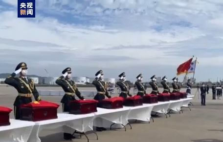 第九批在韓中國人民志愿軍烈士遺骸交接儀式當(dāng)?shù)貢r間16日上午在韓國仁川國際機(jī)場舉行。中韓雙方代表現(xiàn)場簽署交接書,確認(rèn)交接88位在韓中國人民志愿軍烈士遺骸及837件相關(guān)遺物。中國人民解放軍空軍運(yùn)輸機(jī)運(yùn)-20接迎烈士遺骸遺物返回祖國,在進(jìn)入祖國領(lǐng)空后,中國人民解放軍空軍將派出殲-20編隊(duì)為烈士護(hù)航,告慰歸國的志愿軍英靈。