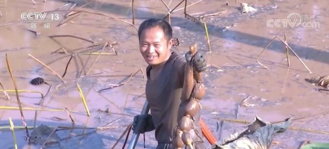 國(guó)慶節(jié)期間的一些時(shí)令生鮮商品集中上市,對(duì)新鮮度和冷鏈的要求都很高。眼下,正是蓮藕新鮮上市的季節(jié),下午3時(shí),記者來(lái)到四川省瀘州市瀘縣玄灘鎮(zhèn)龍鳳村蓮藕基地,只見(jiàn)不少挖藕人頂著烈日在田間采摘蓮藕。他們一手握著高壓水槍?zhuān)皇终艉扇~,在水中仔細(xì)摸索并鎖定蓮藕的位置,手順著荷梗抓到泥下的藕,再用高壓水槍把藕周邊的泥土沖開(kāi),蓮藕就從水下一根根抽了出來(lái)。
