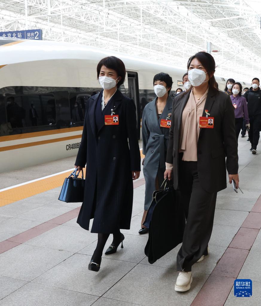 10月13日,來自內(nèi)蒙古自治區(qū)的黨的二十大代表乘高鐵抵達(dá)北京北站。新華社記者 張玉薇 攝