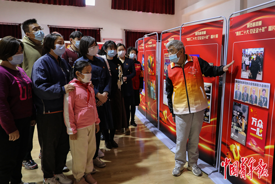 10月16日,在北京市西城區(qū)黨群服務(wù)中心,一場特別的主題圖片展正在進行,66歲的收藏家秦杰老先生向前來觀看黨的二十大開幕式直播的社區(qū)居民介紹他收集的十八大以來重要歷史瞬間的圖像。一張張報紙版面和海報圖片中,濃縮著十年間的重要歷史事件和輝煌成就,也記錄了老百姓生活中觸手可及的點滴變化。