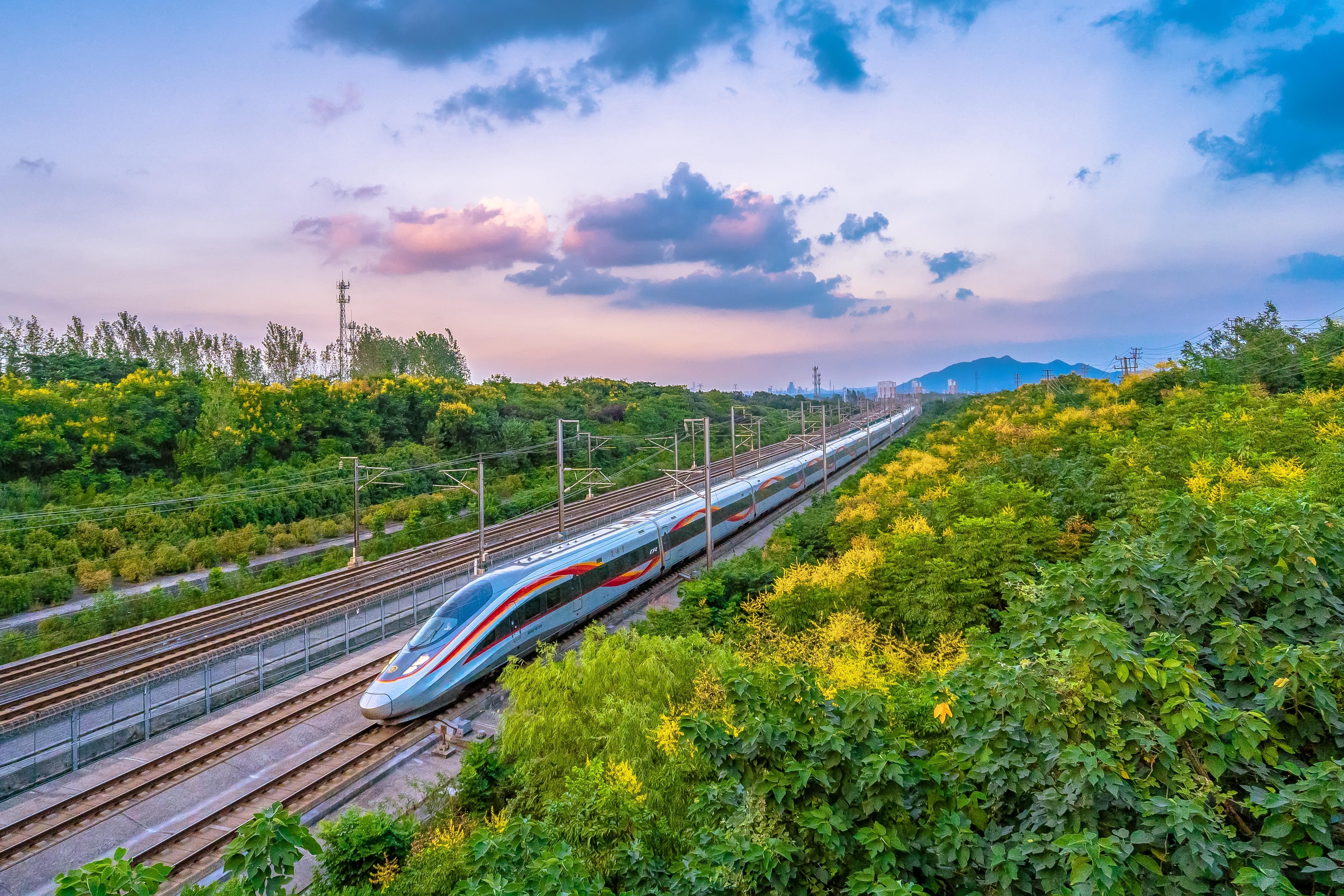 △“復興號”動車組列車在京滬高鐵江蘇鎮(zhèn)江段飛馳而過。