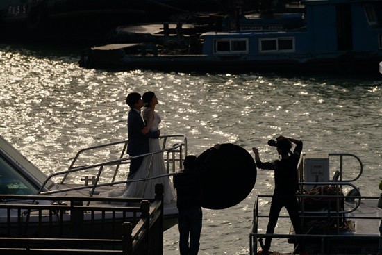2016年,江蘇省新沂市窯灣古鎮(zhèn),運(yùn)河邊拍婚紗照的年輕人。劉世昭/攝