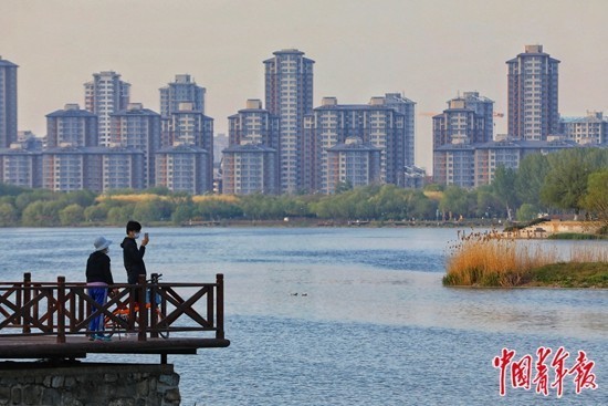 2020年4月,北京通州大運(yùn)河森林公園,不遠(yuǎn)處就是北京城市副中心的建筑群。中青報(bào)·中青網(wǎng)記者 李建泉/攝