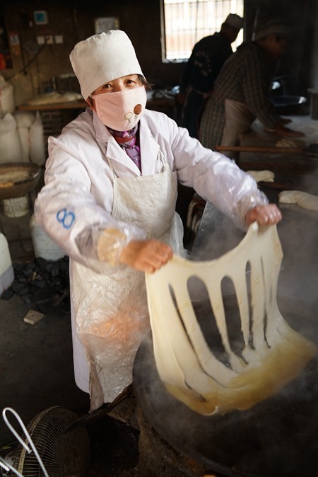 2016年,天津市武清縣河西務(wù)鎮(zhèn),廚師制作漕運(yùn)時(shí)代工人常吃的大油餅。劉世昭/攝
