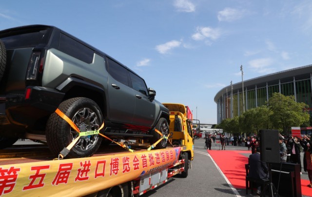 10月24日,裝載首批進(jìn)館展品的卡車(chē)抵達(dá)國(guó)家會(huì)展中心(上海)。新華社記者 方喆 攝