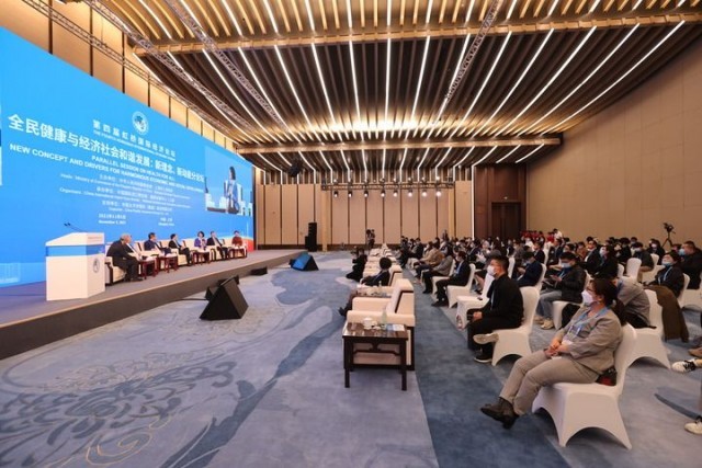 第四屆虹橋國(guó)際經(jīng)濟(jì)論壇“全民健康與經(jīng)濟(jì)社會(huì)和諧發(fā)展:新理念、新動(dòng)能”分論壇在上海舉行(2021年11月5日攝)。新華社記者 王翔 攝