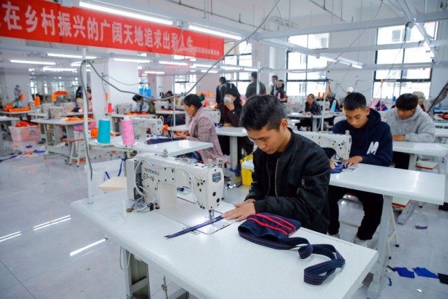 2022年10月28日,在四川省涼山州越西縣越城鎮(zhèn)城北感恩社區(qū)附近的居家靈活就業(yè)示范基地,易地扶貧搬遷到此的居民接受縫制服裝的技能培訓,培訓合格后,他們將在此正式上崗工作。新華社記者沈伯韓 攝