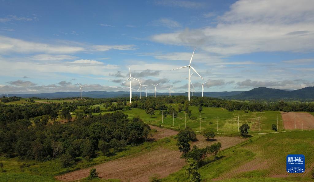 這是位于泰國猜也蓬府的由中國金風(fēng)科技提供的風(fēng)力發(fā)電機(2022年10月4日攝,無人機照片)。新華社發(fā)(塔納攝)