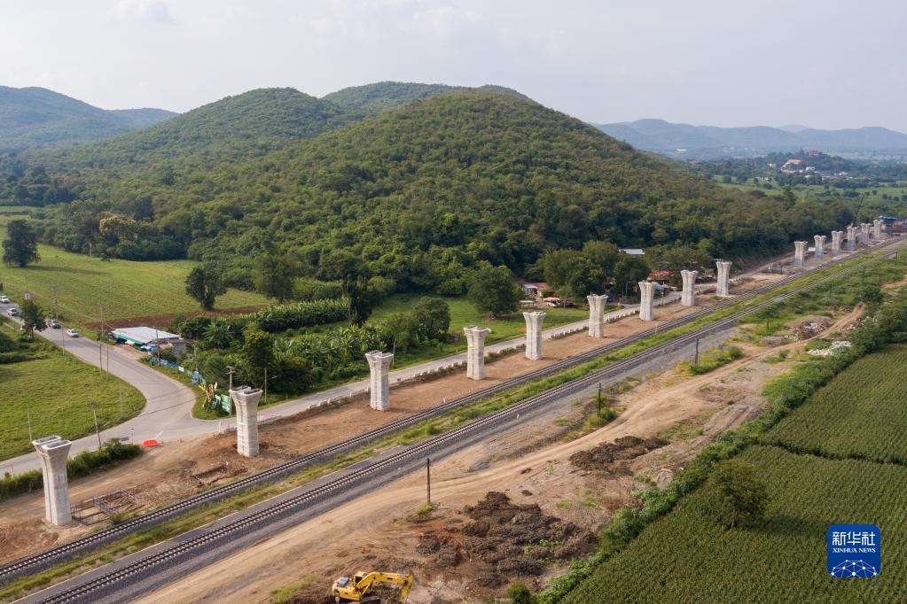 這是位于泰國呵叻的中泰鐵路建設(shè)現(xiàn)場(2022年9月7日攝,無人機照片)。新華社記者 林昊 攝