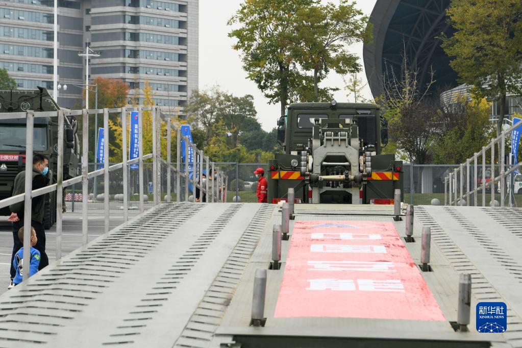 這是在第十屆中國(綿陽)科技城國際科技博覽會(huì)現(xiàn)場展出的應(yīng)急機(jī)械化橋(11月16日攝)。