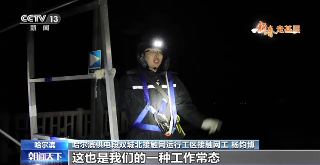 哈爾濱供電段雙城北接觸網(wǎng)運行工區(qū)工長 齊海東:我們工作時間大部分在凌晨的零點半到4點半,因為高鐵白天車輛運行密度大,只有晚上(凌晨)是停運的,每年這個時候都是我們最繁忙的時候。
