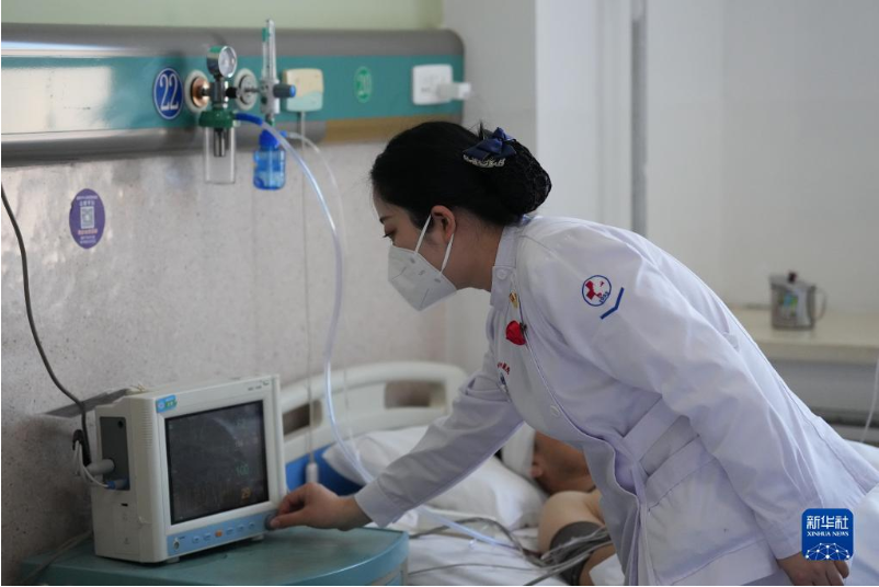 1月16日,盤錦市中心醫(yī)院護士查看受傷人員情況。新華社記者 潘昱龍 攝