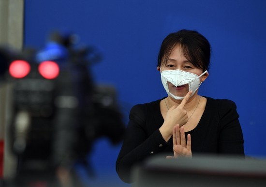 2020年2月4日,北京市舉行新型冠狀病毒感染的肺炎疫情防控工作新聞發(fā)布會。發(fā)布會首次增加手語翻譯。 毛建軍(攝影部)/中新社/人民視覺