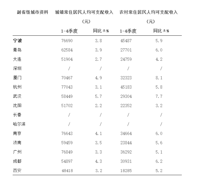 15座副省級城市中,經(jīng)濟增速“破4”的有西安(4.4%)、廈門(4.4%)、武漢(4.0%)和大連(4.0%),長春增速告負(fù),為-4.5%。