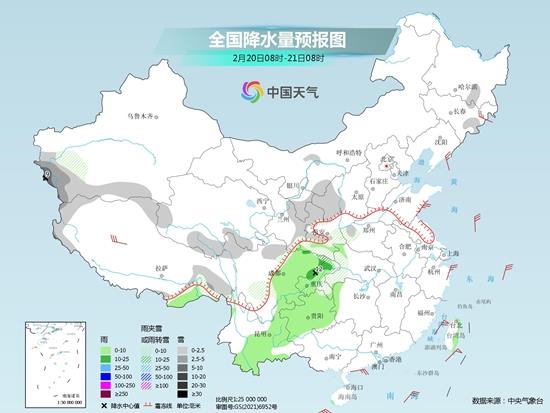 今天(2月20日)開始到22日,我國西部地區(qū)將會有新一輪降水發(fā)展增多,西北地區(qū)東部等地可能出現(xiàn)小到中雪或雨夾雪,同時,西南地區(qū)一帶降水也會比較頻繁,四川南部、云南北部等地未來一周的降水日數可能達到5至6天。氣溫方面,未來十天,我國冷空氣頻繁,中東部氣溫起伏波動會比較明顯,公眾需注意適時增減衣物。